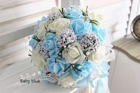 Wedding Bouquet Turquoise Flowers Bridal Bouquet Centerpieces Decorations Silk Ribbon Fake Flower Bouquets 7 Colours Avaliable