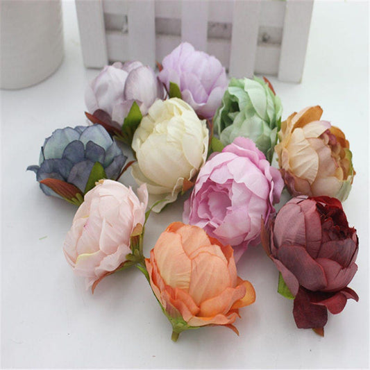 50 Heads Wedding Flowers Artificial Simulation Silk Peony Bud Rose Buds DIY Garland Accessories Wedding Home DIY Decor Florals Diam.4cm