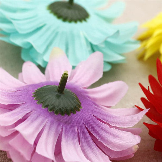 50 Heads Artifical Simulation Silk Gerbera Daisy Flowers DIY Wedding Holiday Decoration Hat shoes accessories Diameter 10cm/3.94"