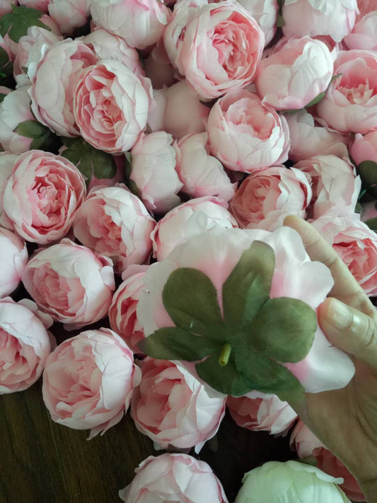 Baby Pink 24 Heads Peony Flower Diam.10cm Artificial Simulation Silk Rose Head Wedding Party Decoration DIY Flower Backdrop