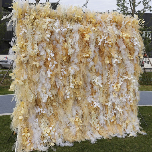 Champagne White Misty Smog Pampas Flower Wall For Arrangement Event Salon Party Photography Backdrop Fabric Rolling Up Curtain Fabric Cloth