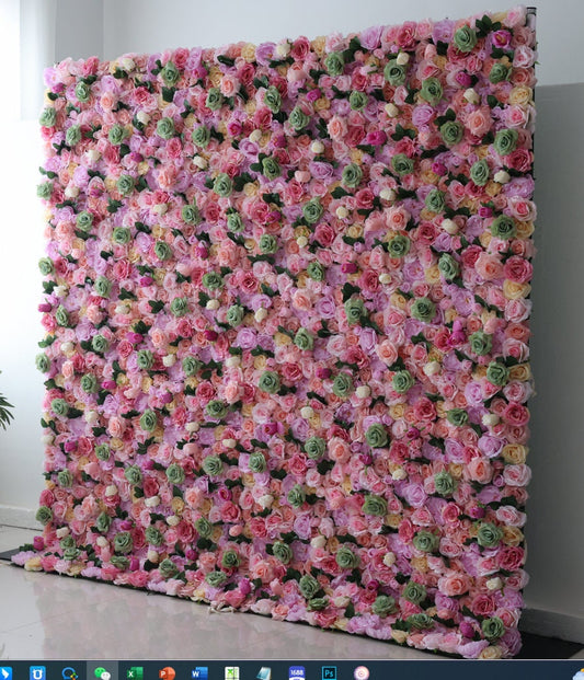 Beauty Pink Flower Wall For Wedding Arrangement Event Salon Party Photography Backdrop Fabric Rolling Up Curtain Fabric Cloth