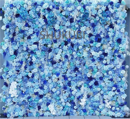 Blue Series Rose Orchid Mist 3D Floral Wall Roll Up Cloth Curtain Flower Wall For Home Decor Romantic Wedding Party Decor backdrop