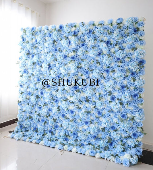 3D Sky Blue Floral Wall For Wedding Photography Backdrop Special Event Salon Party Arrangement Fabric Rolling Up Curtain Fabric Cloth