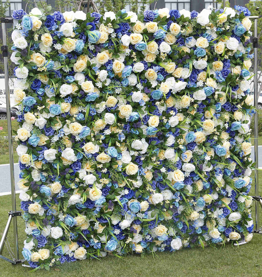 New Arrival Blue Flower Wall For Wedding Arrangement Event Salon Party Photography Backdrop Fabric Rolling Up Curtain Fabric Cloth