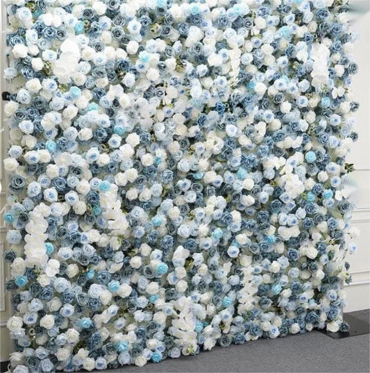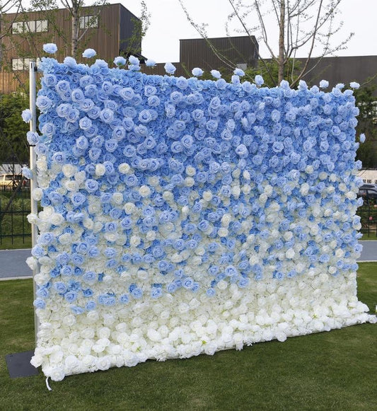 Gradual Sky Blue Flower Wall For Wedding Arrangement Event Salon Party Photography Backdrop Fabric Rolling Up Curtain Fabric Cloth