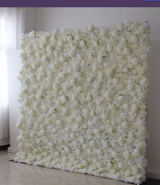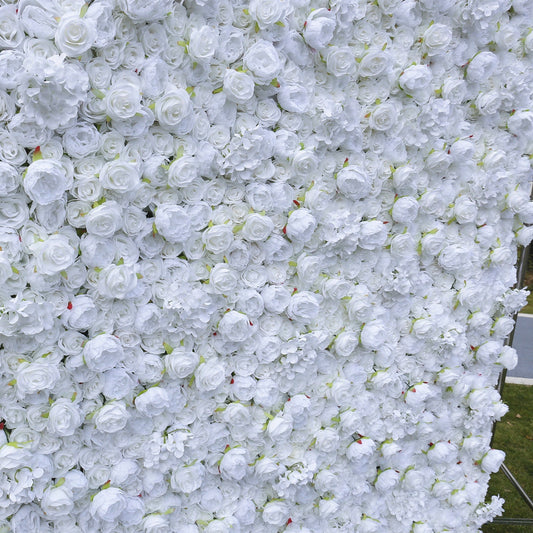 Full White Flower Wall For Wedding Arrangement Event Salon Party Photography Backdrop Fabric Rolling Up Curtain Fabric Cloth