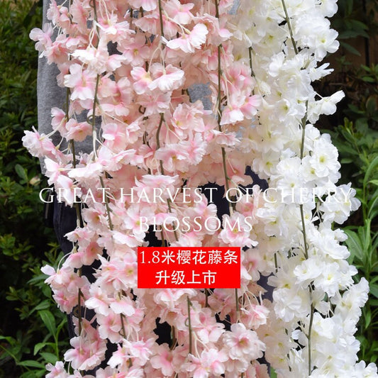 Cherry Blossoms Vine 180cm/70.86" Sakura Peach Blossom Rattan For Wedding Ceremony Table Decor Outdoor Arch Decor Cherry Vine 5pcs