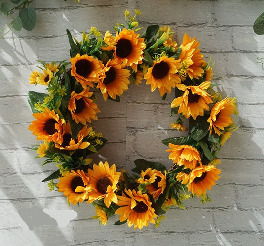 Orange Sunflowers & Eucalyptus Swag/Wreath for Wedding/Front Door, Rustic Flower Swag, Boho Wreath, Turnsolea Eucalyptus Swag/Wreath