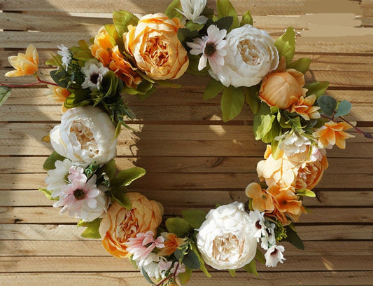 Ivory/orange Peony & Eucalyptus Swag/Wreath for Wedding/Front Door, Rustic Flower Swag, Boho Wreath, Rose and Eucalyptus Swag/Wreath